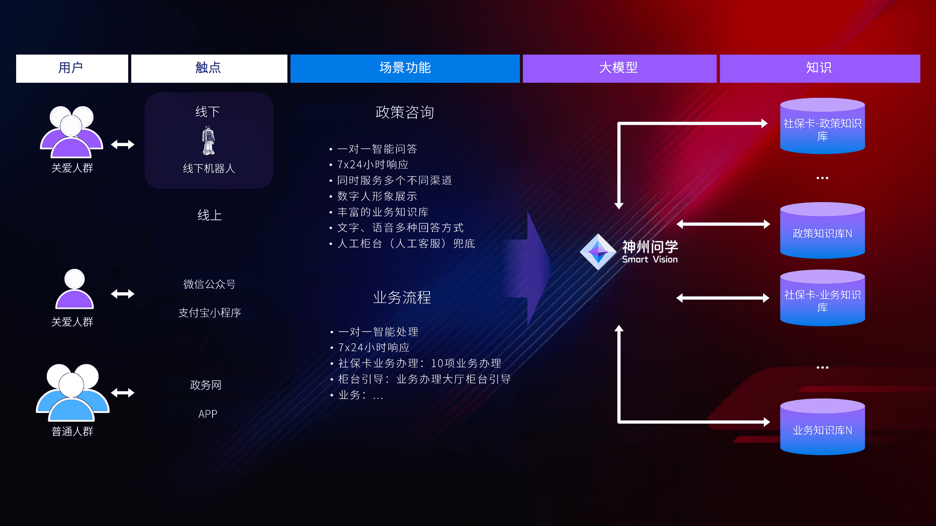• 线上线下全覆盖:线上提供微信公众号、、、支付宝小程序、、、、政务网、、app多种渠道,,与线下机器人形成完整服务体系。。。